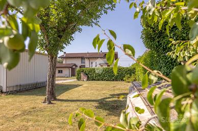 All'esterno, un ampio giardino circonda la villa, perfetto per momenti di relax all'aria aperta o per attività all'aperto.