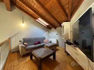 L'ingresso spazioso si apre su un soggiorno luminoso e molto ampio, caratterizzato da una scala che conduce a un soppalco versatile, ideale come studio, stanza hobby o area relax.