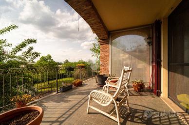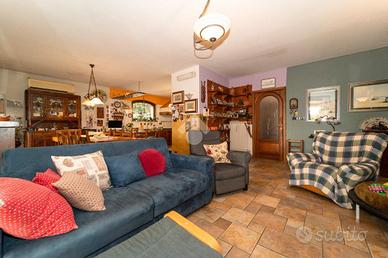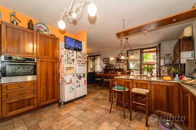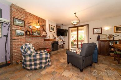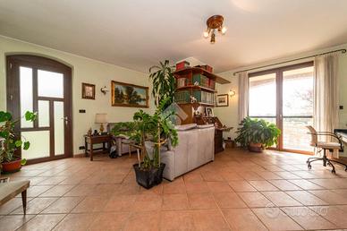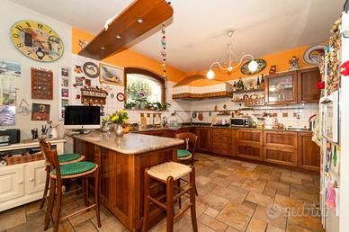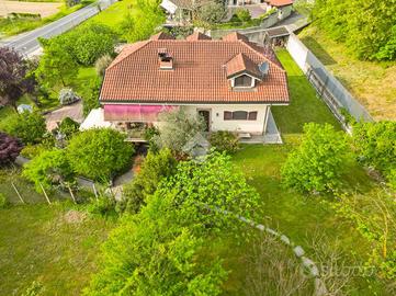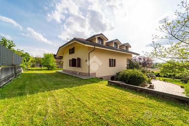Nel paese di San Raffaele Cimena comodo a tutti i servizi e alle principali vie di comunicazione proponiamo un'esclusiva villa curata in ogni dettaglio, che si distingue per gli ampi spazi interni ed esterni. La proprietà, interamente costruita nell'anno 2003, eleva la sua parte abitativa a tre piani fuori terra e dispone di un box auto di circa 150 mq. oltre al giardino di circa 500 metri quadrati disposto sui quattro lati della casa, piantumato con varie essenze floreali. Il giardino è percorso da vialetti la cui pavimentazione è stata realizzata con lastre e pietre antiche. Pur godendo della tranquillità della collina, il Paese offre tutti i servizi necessari, tra cui: supermercato, negozio di frutta e verdura, farmacia, altri negozi con varie attività e categorie merceologiche diverse, oltre a campi da calcio, campo da tennis e palestra, scuole e linea autobus GTT. La vicinanza da Gassino e Chivasso e dal raccordo autostradale Torino-Milano, rende questa casa un'ottima soluzione per chi desidera restare nelle vicinanze dalle grandi città. Il riscaldamento dei locali abitativi avviene tramite caldaia a metano, che garantisce calore in modo efficiente. L'immobile è dotato di vespaio e di impiantistiche idrauliche ed elettriche che consentono di rendere autonomo ogni singolo livello della casa. Ogni apertura del fabbricato dispone di infissi in materiale legno e alluminio avente un doppio vetro. L'ingresso all'abitazione viene preceduto da un vialetto pavimentato in pietra, che si congiunge all'area verde e accesso al portico che può essere anche utilizzato per soggiornarvi e trascorrere momenti conviviali con amici e parenti. Varcata la soglia di accesso principale, il piano terra si compone di grande soggiorno/salotto dotato di caminetto a legna, unito alla comoda cucina. Completano il piano abitativo il bagno, la lavanderia e la centrale termica con accesso dall'esterno. Mediante scala interna rifinita con marmo di pregio, si accede al piano superiore in cu