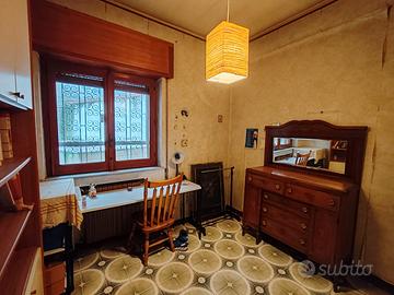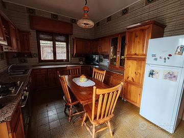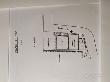 al piano terra troviamo un appartamento di tre vani, composto da un comodo ingresso - soggiorno, camera da letto, cucina, bagno e garage di 25 mq.
