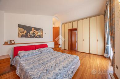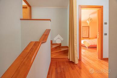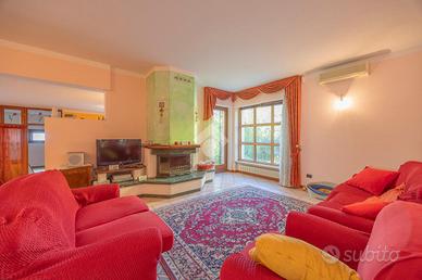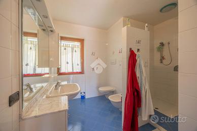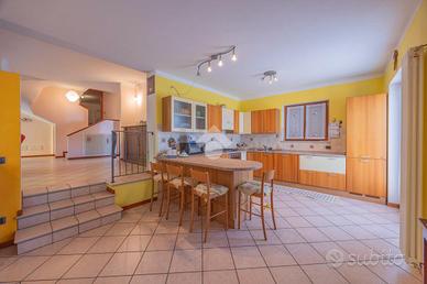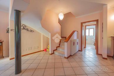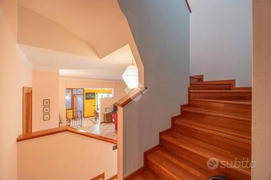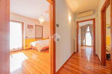 Villa singola panoramica con vista lago e vigneti - San Giorgio Ingannapoltron (Sant'Ambrogio di Valpolicella) Nel suggestivo borgo di San Giorgio Ingannapoltron, inserito tra I Borghi più belli d'Italia, proponiamo in vendita una villa singola di ampie dimensioni, immersa nella quiete della Valpolicella Classica con vista aperta sui vigneti e sul Lago di Garda. Costruita nel 1999 su un lotto privato di circa 830 mq, la proprietà si distingue per la luminosità degli ambienti, la funzionale distribuzione interna e la posizione dominante, che garantisce privacy pur rimanendo comoda ai servizi e alle principali vie di collegamento. Distribuzione degli spazi Piano seminterrato Con accesso diretto al giardino, ospita una grande taverna perfetta per zona relax o conviviale, una cantina di servizio, centrale termica e lavanderia. Piano terra Dall'ingresso principale si accede a un ampio soggiorno con camino e grandi aperture panoramiche. La cucina abitabile con zona pranzo si apre su un balcone soleggiato e con vista lago. Completano il livello una camera/studio e un bagno finestrato con doccia, oltre all'accesso diretto al garage. Piano primo La zona notte comprende una camera padronale con bagno privato e balcone vista lago, una camera doppia, una camera singola (entrambe con balcone) e un secondo bagno finestrato con ampia doccia. Da qui si raggiunge una stanza di circa 30 mq con bagno dedicato e ingresso indipendente, perfetta come studio professionale, spazio ospiti o mini-dépendance. Esterni e dotazioni Il giardino terrazzato circonda la villa offrendo zone pianeggianti per momenti di relax o per realizzare un pergolato o area barbecue. Un'area pavimentata laterale conduce al box auto mentre i terrazzi panoramici permettono di ammirare tramonti sul Lago di Garda. Finiture: * Pavimenti in ceramica nella zona giorno e parquet nella zona notte * Serramenti in legno con vetrocamera * Camino funzionante, impianto di climatizzazione e allarme