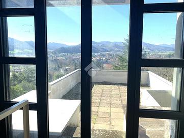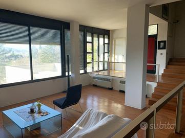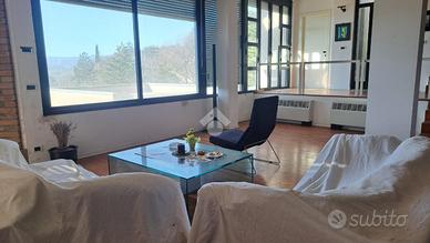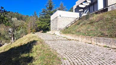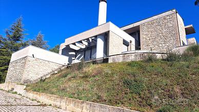 L'Arte dell'Abitare: Capolavoro d'Autore firmato Mario Miraglia Un'icona di architettura moderna sospesa tra cielo e storia. Situata in una posizione dominante e assolutamente privilegiata, proponiamo in vendita una prestigiosa villa unifamiliare nata dal genio dell'architetto Mario Miraglia. Questa residenza non è solo una casa, ma un'opera d'arte volumetrica che si integra armoniosamente con il paesaggio circostante. L'Estetica e il Design Caratterizzata dal tratto distintivo di Miraglia, la villa gioca con geometrie audaci, ampie vetrate a tutta altezza e una scelta materica raffinata che fonde cemento armato, pietra e legno. Gli spazi interni, fluidi e inondati di luce naturale, creano un dialogo costante tra l'ambiente domestico e la natura esterna. La particolare posizione permette alla luce del sole, nel corso della giornata, di colpire i volumi della casa creando un diverso gioco di pieni e di vuoti che si modifica nel tempo, offrono interessanti percezioni architettoniche. Il Panorama Vero fiore all'occhiello della proprietà è la vista mozzafiato: un affaccio panoramico senza eguali che domina l'antico borgo medievale. Al tramonto, il contrasto tra le linee avanguardiste della villa e le mura storiche illuminate del borgo regala un'atmosfera magica e senza tempo. Caratteristiche Principali: La villa si sviluppa su tre livelli su una superficie 510 mq utili collegati internamente da due spettacolari scale: una scenografica scala circolare in C.A. e una rettangolare classica, simboli di un design funzionale e ricercato. * Piano Terra - La Rappresentanza:Un ampio soggiorno inonda di luce la zona giorno, affiancato da una cucina con tinello e sala da pranzo formale. Il piano è completato da una camera per gli ospiti, bagno e un'area servizi impeccabile con lavanderia, stireria e dispensa. * Piano Primo - La Zona Notte:Un rifugio di privacy interamente pavimentato in pregiato parquet. Ospita una suite padronale con bagno privato e spogliatoio, una