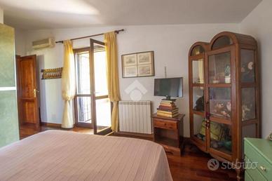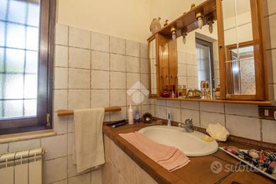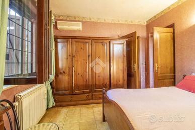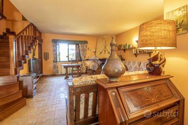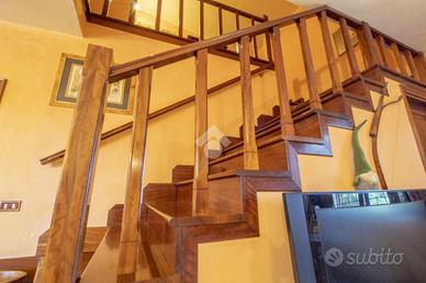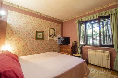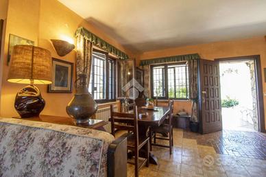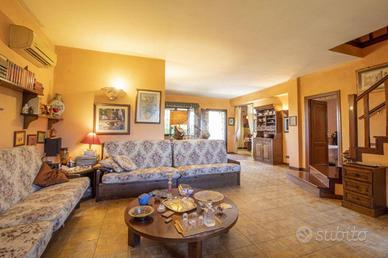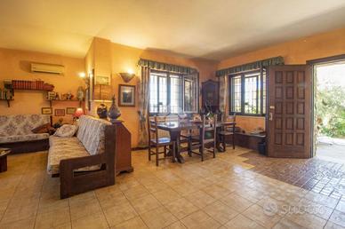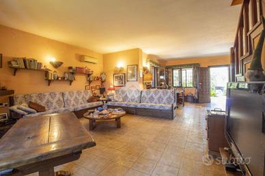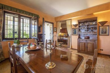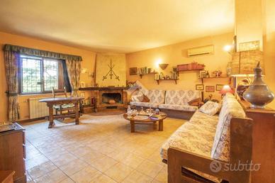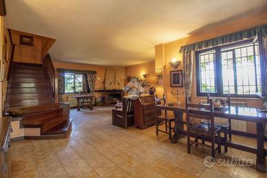Sant'Angelo Romano centro della Provincia, ben servito dai principali punti vendita, uffici amministrativi e ad un passo dalla Capitale Tra le dolci colline santagiolesi, proponiamo in vendita Villa Unifamiliare in una location tranquilla, immersa nella natura e nella totale riservatezza. La villa sorge su un piccolo colle, circondata da terreno collinare di 8679 mq completamente recintata, è caratterizzata da un viale pietrisco, ai lati adornato e abbellito con una siepe di alberi a basso fusto e cedri dell'Himalya. L'esterno, oltre alla presenza del terreno gode di un portico di circa 12 mq, rifinito con colonne rivestite in pietra sulla parte bassa, il quale vanta di una vista aperta come se si stesse ammirando i paesaggi di un quadro su tela. Queste aree esterne sono il fiore all'occhiello della soluzione, dove trascorrere bellissimi attimi e momenti di relax. La proprietà costruita negli anni '90 ha una struttura in cemento armato, rifinita con intonaco e pietra. La villa, che misura circa 311 mq, si sviluppa su 3 livelli collegati internamente tra loro. * IL PIANO SEMINTERRATO: garage con costituito da un unico ambiente non tramezzato con la predisposizione agli all'allacci sia idrico che termico. Il C/2 rifinito può essere adibito ad una taverna. * PIANO TERRA: salone di rappresentanza con camino, suddiviso tra sala da pranzo e soggiorno luminoso caratterizzato da 3 punti luce grandi, cucina abitabile e camera matrimoniale con bagno padronale con box doccia; * PRIMO PIANO: su questo livello si sviluppa l'immensa zona notte, raggiungibile con un'elegante scala di legno; si compone da disimpegno e 2 camere da letto ciascuna con bagno privato. La camera piu' grande dispone della terrazza, la quale misura 17 mq che dona luce all'ambiente.ASPETTI TECNICI: Il Riscaldamento autonomo con impianto GPL, climatizzatori e camino. Gli infissi interni in legno doppio vetro e gli esterni con sportelloni, grate e il portone blindato, per garantire maggiore s