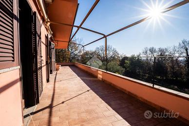 Nel cuore della località di Selva, nel comune di Sant'Angelo Romano, si trova una villa singola di 200 mq, costruita nel 1995. Al primo piano, l'immobile offre un ampio salone con cucina a vista, perfetto per momenti conviviali. La zona notte comprende una camera con bagno privato, una seconda camera e un ulteriore bagno. Un terrazzo panoramico completa il piano, regalando una vista suggestiva sui dintorni. Al piano terra, un ambiente rustico accoglie una seconda cucina e un bagno, ideale per ospiti o per creare uno spazio indipendente. La villa è dotata di pannelli solari e termocamino, garantendo efficienza energetica e comfort. Un pozzo privato assicura l'approvvigionamento idrico. Il terreno di 3.500 mq che circonda la proprietà offre ampie possibilità per chi ama la natura e desidera uno spazio esterno da personalizzare.