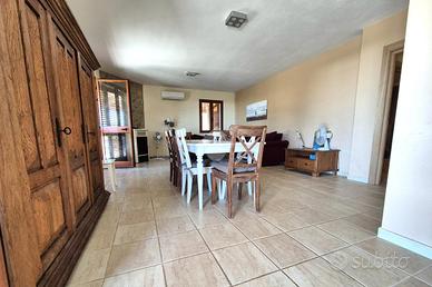 Costruita nel 2006, la proprietà si sviluppa su due livelli per un totale di 237 mq, offrendo ambienti ampi e ben distribuiti. Al piano terra si trova il primo appartamento, preceduto da una veranda molto ampia che abbraccia due lati dell'immobile, perfetta per rilassarsi all'aperto o condividere momenti conviviali. Da qui, lo sguardo si apre su una splendida vista mare, regalando ogni giorno scorci unici sul Golfo e sulla Laguna di Sant'Antioco.
