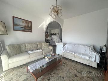 La seconda unità, al piano primo, è composta da un ampio salone valorizzato dall'uscita sul balcone che dona aria e luce all'ambiente, la cucina abitabile, due camere da letto matrimoniali, una cameretta ed il bagno. Completa la soluzione il terrazzo coperto ove è possibile pranzare e cenare all'aperto godendo di momenti di assoluto relax nelle calde giornate estive.