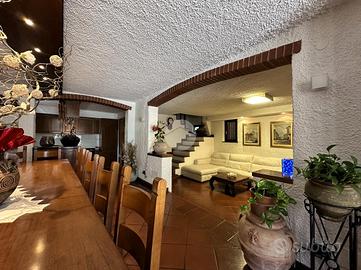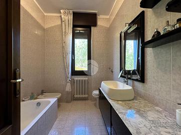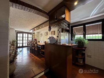 Santo Stefano Ticino: all'interno di un quartiere prevalentemente composto da ville signorili e case private. In ottima posizione per raggiungere, anche a piedi, tutti i servizi di prima necessità, le scuole, il Centro Paese e la Stazione Ferroviaria. Villa singola, libera su 4 lati, con la parte abitativa distribuita su unico livello. Caratterizzata da locali tutti di dimensioni particolarmente generose e con una funzionale distribuzione degli spazi. Il disimpegno d'ingresso ci conduce alla sala con l'attigua zona pranzo, quest'ultima con uscita sul pratico balcone; un pratico cucinotto completa il reparto giorno. Il lato dedicato alla zona notte, accessibile da disimpegno, si compone di 3 camere matrimoniali, tutte di dimensioni davvero ragguardevoli, e da un bagno, di comode dimensioni, completo di vasca da bagno. Tutta la parte abitativa, eccezion fatta per il bagno, è impreziosita da un'elegante pavimetazione in marmo, diversa a seconda dei locali ma tutta particolarmente sofisticata e di pregio. Una comoda ed agevole scala interna ci conduce al piano tavernato, esattamente speculare a quello abitativo ed anch'esso di metratura davvero generosa. Questo piano è caratterizzato da finiture estremamente ricercate e di ottima fattura; pavimentazioni in cotto, elegante camino in muratura angolare e la costante cura e manutenzione interna, rendono questi ambienti davvero eccezionali. Il piano tavernato si compone di 3 ampi e generosi locali, un locale caldaia oltre ad un bagno/lavanderia comodo e completo di tutti i sanitari. Esternamente l'impatto è davvero mozzafiato; lussureggiante prato, funzionale e riservato, costantemente accudito e diserbato. La parte destinata a cortile è stata recentemente manutenuta con eleganti piastrelle. La parte esterna, non solo abbraccia la villa su 4 lati donandole indipendenza e riservatezza, ma è dotata di volume residuo utile per eventuali ampliamenti. La presenza di un ampio box doppio in larghezza completa la soluzione. Una s...