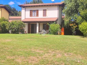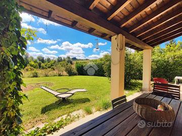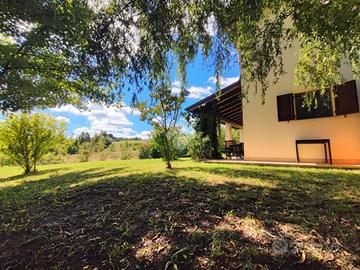 La villa è a Sarezzano, in zona tranquilla con vista panoramica sulle colline. L'abitazione si presenta in buonissime condizioni e si sviluppa su più livelli. L'ingresso al piano terra affaccia sull'ampio e luminoso soggiorno con cucina a vista open space e camino ventilato con canalizzazione nella zona notte, sempre al piano terra troviamo il disimpegno, il bagno e due porticati, quello sul retro con accesso al grazioso giardino di circa 800mq, ideale come angolo relax e per pranzi e cene all'aperto, con vista sulle colline per godere della tranquillità della zona. Il primo piano è composto dalle tre camere da letto, bagno e un ampio terrazzo che offre un ulteriore spazio esterno ideale per momenti di relax.