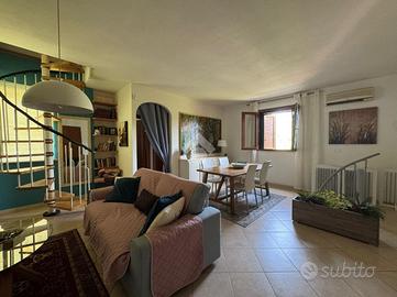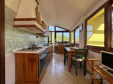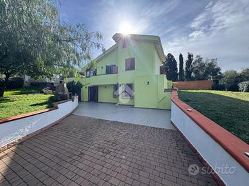 PRESSI VIA MILANO: in ottima zona residenziale, proponiamo VILLETTA INDIPENDENTE IMMERSA NEL VERDE, a circa 2,5 km dal centro città. La soluzione di circa 200 mq è disposta su due livelli più piano soffitta mansardato, circondata da circa 5.000 mq di giardino con una parte di prato verde e una parte di ULIVETO ben curato. Ad adornare l'esterno e la casa stessa, troviamo una PISCINA fuori terra rivestita in legno di ampie dimensioni che risulta elegante, raffinata e dall'aspetto naturale, integrandosi perfettamente nell'ambiente. Al pian terreno, abbiamo all'ingresso un soggiorno con angolo cottura spazioso impreziosito da un CAMINETTO che assieme alla stufa a pellet canalizzata, fungono da fonte di calore. Su questo piano troviamo due camere da letto, una matrimoniale e una singola ed un bagno finestrato con doccia e vasca. Al piano superiore, invece, abbiamo la cucina caratterizzata da grandi vetrate da consentire un collegamento stretto con il terreno e proseguendo vi è un ampio soggiorno, una camera da letto matrimoniale e il bagno finestrato con doccia. Una scala a chiocciola installata nella sala porta alla zona mansardata adibita a cameretta che ha anch'essa un ingresso indipendente dall'esterno della casa. Tale proposta si presta ottimamente per chi vuole abitare nella tranquillità di una casa indipendente in prossimità della città prendendosi cura del giardino abbandonando seppur in modo temporaneo, la frenetica vita cittadina. Non da escludere vi è la possibilità di una convivenza, data l'ideale divisione della casa, tra genitori e figli o tra sorelle o fratelli.