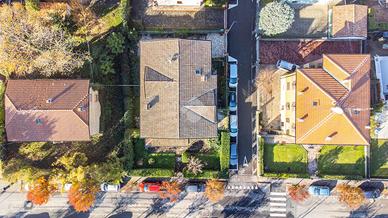 COSA SAPERE SULL'IMMOBILE: giardino ed area cortiliva circostante, piano seminterrato taverna mq. 115 oltre a garage. Piano terreno appartamento di mq. 130 oltre a due logge. Primo piano mq. 135 oltre a terrazzo e balcone. Piano mansardato di mq. 140.