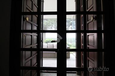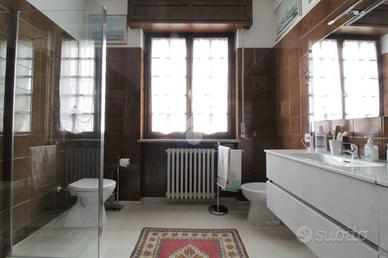 Attraversando il giardino di quasi 900 mq si arriva ad una bellissima veranda con grandi vetrate panoramiche che permettono continuità tra esterno ed interno e che consente anche l'accesso abitazione. Entriamo direttamente nel soggiorno, di comode dimensioni e dotato di camino, dove poter trascorrere piacevoli momenti di relax. Da qui si accede sia all'ampia cucina, sia alla zona dei servizi dove sono presenti un comodo bagno finestrato con doccia, un'ampia lavanderia ed il box di 22 mq ca con basculante sezionale. Dal soggiorno si sale poi alla zona notte composta da due camere da letto matrimoniali e dal bagno padronale con ampia doccia.