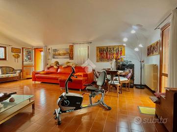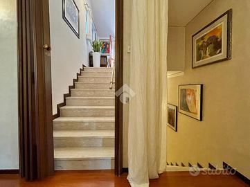 L'immobile è caratterizzato da ampi spazi e ben distribuiti su vari livelli sfalsati. Al piano terra troviamo un comodo ingresso che conduce a un luminoso salotto con un accogliente caminetto. Dalla zona giorno abbiamo accesso a una cucina separata con un accesso alla lavanderia e a un grazioso plateatico che guarda al giardino. La zona notte, collegata alla zona giorno grazie a un'ampia scala, è composta da un disimpegno che conduce a due camere da letto e un bagno. Alla fine di esso troviamo, separatamente, la camera padronale con accesso al bagno privato e a un comodo terrazzo. L'ultimo piano della casa offre una spaziosa mansarda con accesso a un sottotetto/ ripostiglio abitabile e un privato solarium.