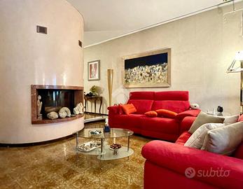 Ciò che rende unico questo immobile è un ampio e ristrutturato studio professionale di una metratura complessiva di circa 100 mq con ingresso indipendente esterno (accessibile dal giardino tramite un comodo camminamento) ma con anche un ingresso privato interno. Lo studio è composto da due ambienti con grandi vetrate e pavimentazione in legno. Un terzo bagno di servizio è accessibile da entrambi gli spazi dello studio. Completano lo studio un'ampia taverna interrata con accesso ad altri due locali di servizio e una piccola cantina. La proprietà è completata da un ampio garage di pertinenza comodo per auto, biciclette e motorino. All'esterno la possibilità di un posto auto coperto.