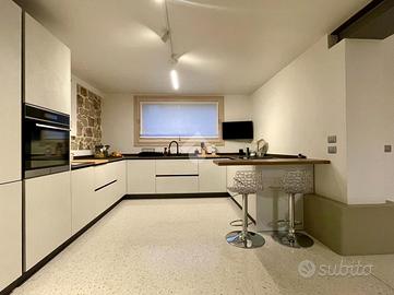 La casa si compone al piano terra di un'ampia zona giorno con cucina separata e un bagno di servizio. Mentre al primo piano, da cui si accede tramite una scala con parapetto in cristallo, troviamo due camere matrimoniali, un bagno e un'altra camera matrimoniale con bagno in suite. Tutte le camere da letto presentano pannelli fonoassorbenti e split (revisionati da meno di un anno) freddo/caldo. Al piano troviamo anche accesso a un comodo terrazzo e una zona lavanderia.