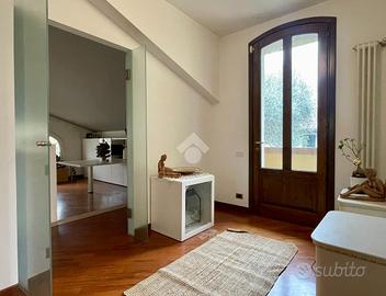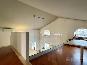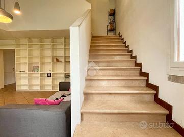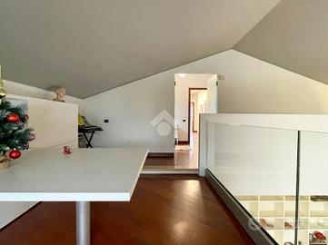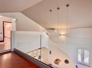 La zona notte, al piano primo, ospita tre camere da letto, di cui una con cabina armadio e/o ripostiglio, due bagni e una piacevole loggia. Il ballatoio affaccia sul soggiorno e conduce a un soppalco, uno spazio versatile da adibire a zona relax, lettura o area studio.