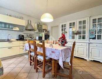 L'ingresso conduce a un ampio soggiorno estremamente luminoso, cuore della casa, perfetto per la vita quotidiana e per ricevere ospiti. La cucina separata, dotata di piano cottura a induzione e caminetto, è uno spazio funzionale ma allo stesso tempo conviviale, ideale per chi ama vivere la cucina come luogo di incontro.