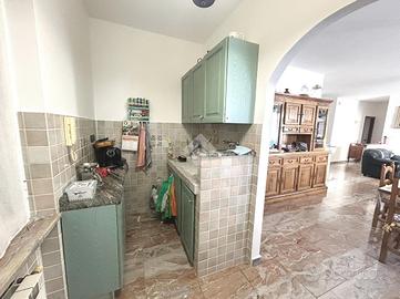 Ingresso in open space con una grande porta finestra ad arco che si affaccia sulla stradina privata, tinello,due camere matrimoniali e un bagno doppio completo anch'esso di vasca grande. Vi e' inoltre un altro locale grezzo dove, data la metratura, è possibile creare altre due camere matrimoniali. Da questo vano possiamo poi accedere, tramite una scala interna, al secondo piano seminterrato, arrivando così al box doppio e al locale tecnico.