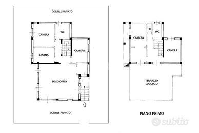 Salendo la scalinata si accede al primo piano, composto da due camere da letto matrimoniali, secondo bagno finestrato dotato di vasca e comodo ripostiglio. Da questo piano si accede anche all' AMPIO TERRAZZO LOGGIATO della soluzione immobiliare, che sviluppandosi in maniera regolare sia in lunghezza che in larghezza, dà la possibilità di poter collocare diverse soluzioni d'arredo al fine di poter sfruttare a pieno questo spazio.