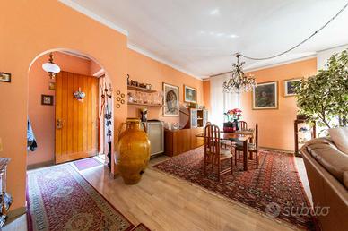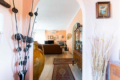 Mediante una scalinata si accede all'abitazione, con ingresso in disimpegno che conduce direttamente nell'AMPIO soggiorno con camino e molteplici punti luce che rendono l'ambiente particolarmente luminoso. Proseguendo tramite corridoio, si raggiunge la cucina abitabile, seguita dalle prime due camere da letto presenti al piano terra e il primo bagno finestrato dotato di vasca e box doccia.