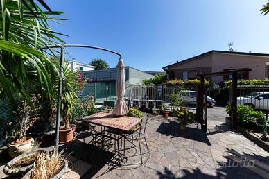 Ingresso nel giardino privato, tramite portoncino pedonale e cancello per accesso con l'auto; suddiviso in area verde e patio piastrellato, che rendono la soluzione unica ed esclusiva. Di fatti, questi ampi spazi, possono diventare dei veri e propri angoli di paradiso facilmente arredabili e sfruttabili grazie all'installazione di gazebi, tende o pergolati, ideali per creare zone d'ombra durante la giornata.