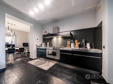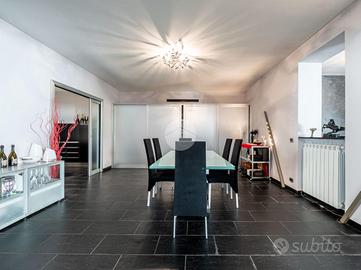 - rivestimenti in ardesia naturale zona giorno, parquet wengè zona notte e bagni Bisazza,