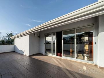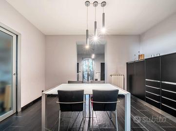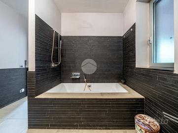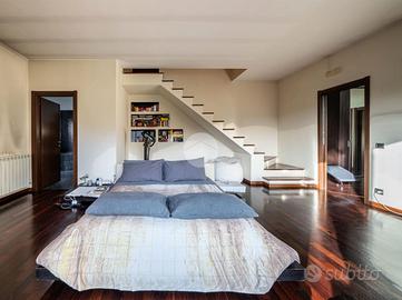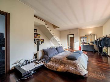 Salendo poi la meravigliosa scala a vista raggiungiamo la zona notte: aperta su un luminoso disimpegno, ci conduce ad una prima camera matrimoniale con camino e balcone ad oggi studio, ad una lavanderia con ripostiglio e uscita sul terrazzo retrostante, ad una seconda camera con bagno en-suite con doccia e vasca, ad un bagno con finiture di pregio a servizio della camera ospiti, anch'essa matrimoniale ed infine, alla master room.