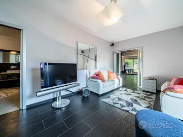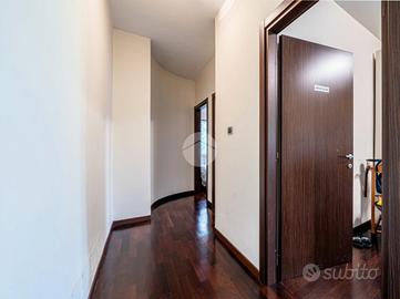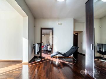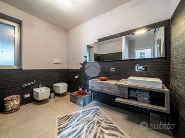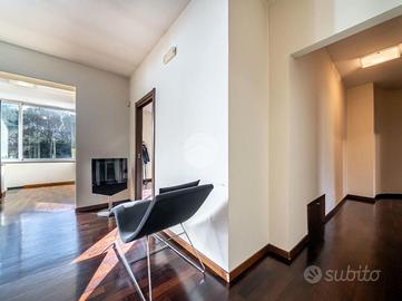 Un camera padronale questa, disposta su due livelli con scala interna rivestita in parquet, bagno privato, cabina armadio con un quinto bagno e palestra ed in ultimo, con uscita sul terrazzo esclusivo che apre la vista sul parco e sulla piscina.