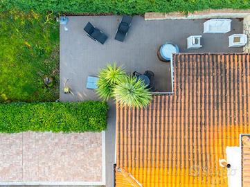 La villa di lusso è posta su un'estensione di circa 3.900 mq, dove ci accoglie un ampio giardino che circonda la proprietà e una splendida piscina interrata in cemento con pavimentazione perimetrale con area attrezzata per barbecue perfetta per godere delle giornate all'aperto.