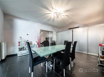 - porte a scrigno in vetro satinato e alluminio nella zona giorno e battenti in legno massello,