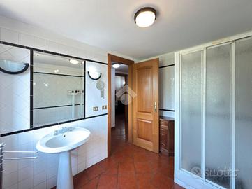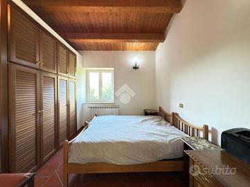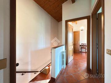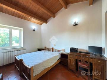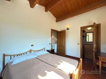 Procedendo poi al Piano Primo attraverso una scala rustica e suggestiva troviamo lo spazio dedicato alla zona notte: con altre due camere matrimoniali, di cui una con loggia panoramica e armadio a muro, l'altra con cabina armadio e un bagno finestrato con doccia garantisce assoluta privacy e comfort per un nucleo famigliare numeroso.