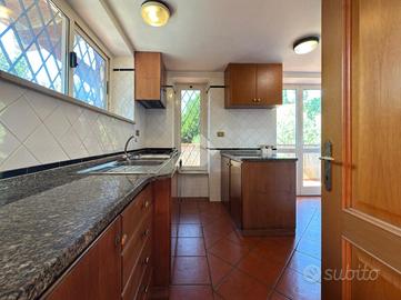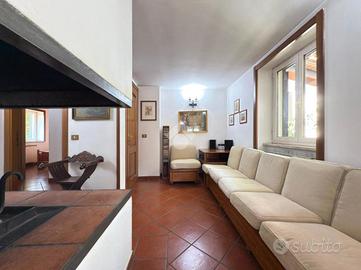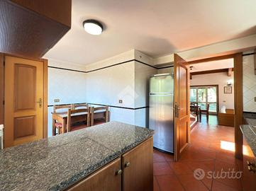 Al Piano Terra troviamo ad accoglierci un luminoso ingresso che si apre sul corridoio completo di vano ripostiglio, un'ampia zona living con doppio soggiorno, camino in stile Tirolese e grandi vetrate che si aprono sul portico protetto da una spettacolare tettoia in legno di castagno. Proseguendo, la cucina abitabile con accesso diretto al piano seminterrato e al balcone, 2 camere da letto matrimoniali di cui una con cabina armadio e una con accesso sul patio esterno e bagno finestrato con doccia.