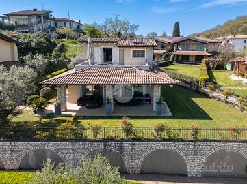 Immersa nella splendida cornice di Soiano del Lago, questa bellissima villa singola in residence rappresenta l'eccellenza abitativa per chi cerca comfort, privacy e una vista mozzafiato sul lago. Disposta su tre livelli, questa residenza è un vero gioiello di design e funzionalità. Al piano terra si apre un ampio soggiorno con cucina a vista, uno spazio luminoso e accogliente che si affaccia su un portico coperto, ideale per momenti di relax o cene all'aperto ammirando il panorama circostante. Sempre a questo livello troviamo due camere da letto confortevoli e un bagno, perfetto per ospiti o familiari. Salendo al primo piano, la villa offre una raffinata camera matrimoniale dotata di cabina armadio e bagno privato, un angolo di intimità e comfort dove rigenerarsi dopo una giornata intensa. Il livello interrato completa la proprietà con una spaziosa taverna, un locale tecnico e un box auto doppio, garantendo ampio spazio e praticità. Il portico e il giardino privato arricchiscono ulteriormente questa proposta immobiliare, offrendo tranquillità e la possibilità di vivere appieno gli spazi esterni immersi nel verde. Il residence dispone inoltre di una piscina condominiale, perfetta per rinfrescarsi nelle calde giornate estive. Questa villa vanta una classe energetica C ad alta efficienza, sintesi tra rispetto per l'ambiente e risparmio nei consumi. Un'opportunità unica per vivere in un contesto esclusivo, con vista lago impareggiabile e tutti i comfort di una casa moderna e funzionale. Non lasciarti sfuggire l'occasione di chiamare questa meraviglia "casa".