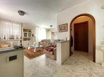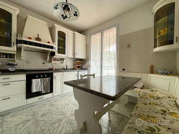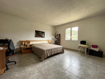 La villa si sviluppa su due livelli. Al piano superiore, l'abitazione principale di circa 80 mq offre un ambiente luminoso e ben distribuito, composto da un ampio soggiorno, una cucina separata, una camera matrimoniale e un bagno. La disposizione attuale può essere facilmente modificata: spostando la cucina nel soggiorno si può ricavare una seconda camera, rendendo l'immobile adatto anche a una famiglia o a chi desidera una stanza aggiuntiva per ospiti o studio. All'esterno, la villa è valorizzata dal portico, perfetto per godersi l'esterno anche nelle giornate più calde o in caso di pioggia, ma soprattutto da una splendida terrazza di oltre 100 mq, pavimentata in cotto, ideale per pranzi all'aperto, relax al sole e momenti in compagnia.
