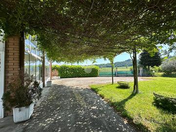 CUSTOZA - immersa nel verde, in posizione panoramica e circondata dai vigneti, proponiamo in vendita villa singola con circa 3700 mq di giardino.