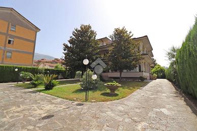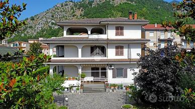 A Sora, a pochi passi dal corso principale della città Volsca, proponiamo un'affascinante VILLA INDIPENDENTE, circondata da un incantevole Giardino di 1'900mq con piante ornamentali, recintato, doppio accesso da due vie parallele, con cancelli pedonali e carrabili automatici. L'abitazione si sviluppa su 4 livelli con ingresso principale dal Portico al piano rialzato, ampio salone con pavimentato in marmo ed ampie vetrate in cui a dominare è il camino, una cucina abitabile con camino e accesso al giardino sul retro, sala da pranzo, ripostiglio e bagno; il P.1° ci conduce alla zona notte collegata con una comoda scala in legno, in cui troviamo uno studio con due eleganti librerie in legno, n°4 camere da letto di cui due padronali con bagno interno; continundo al P.2° ci sono altre n°2 camere da letto, bagno ed il Portico collegato ad un ampio Terrazzo dove ammirare l'affaccio sulla città e sul suo Monte San Casto con la Chiesa della Madonna delle Grazie. Completa la proprietà il piano seminterrato di 180mq circa adibito a Garage e Cantine, completamente pavimentato ed utilizzabile anche per i propri hobby. Ogni ambiente è stato curato nei minimi dettagli, con materiali di alta qualità e design classico, rifiniture in marmo nella zona giorno ed in parquet posato a spina di pesce nella zona notte. Ideale per chi cerca una residenza elegante e confortevole, in una posizione centrale e comoda a tutti i servizi. Per ulteriori informazioni e visite, non esitate a contattarci.