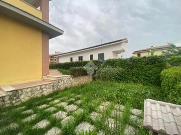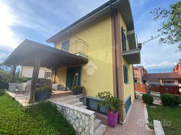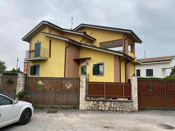 A Sora, in zona residenziale, a metà strada tra la città Volsca e la città delle Cascate di Isola del Liri, proponiamo all'interno di un 'residence' di recente costruzione, un VILLINO INDIPENDENTE disposto su 4 livelli e completamente recintato con cancello automatico. Al Piano Seminterrato troviamo un grazioso rustico ben rifinito con camino, bagno e Garage; il Piano Rialzato, accessibile sia internamente con la scala in marmo, sia esternamente, troviamo un piccolo ingresso che conduce ad un'ampia zona giorno con salone che affaccia sul portico in legno, cucina, studio e bagno di servizio; proseguendo al piano superiore c'è la zona notte con n°2 camere da letto, corridoio, n°2 bagni, n°3 Balconi e Terrazzo coperto. Salendo ancora con una comoda scala a chiocciola in legno si giunge al Piano Sottotetto in cui trovaimo la camera padronale. Completa la proprietà il Giardino con varie piante ornamentali. Il villino è dotato di allarme, infissi doppio vetro in legno e riscaldamento a metano. OTTIMA POSIZIONE