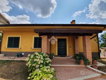 A 5km da Sora, in località Ridotti, disponiamo di un VILLINO INDIPENDENTE di recente costruzione, interamente recintato, disposto su 2 livelli e composto da: P.S.: ampio Garage per 4 auto, taverna con dispensa e bagno, locale caldaia; P.T.: ingresso, cucina e salotto open-space con predisposizione per il camino e un grande Terrazzo coperto Panoramico, disimpegno, ripostiglio, n° 3 camere da letto e n°2 bagni,e pavimentata. L'immobile dispone anche di un piano Sottotetto composto da un unico grande vano con bagno. Completa la proprietà il Giardino con piante di ulivo e la Corte pavimentata. L'abitazione, dalle finiture di pregio, è stato costruito in cemento armato ed è ANTISISMICO. Inoltre, essendo in zona collinare e tranquilla, gode di una posizione assolata e panoramica con vista su tutta la valle e sulle montagne circostanti. OTTIMO STATO.