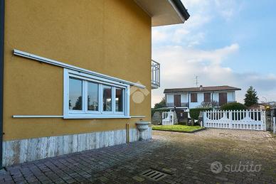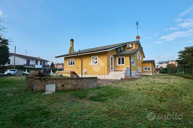 Al 'Villaggio Europa', circondata dal giardino privato di 450 mq, questa villa costruita negli anni '70 e libera subito è appena stata imbiancata e risistemata. Dotata di serramenti in legno e parquet in tutte le stanze, è elegante e luminosa, al suo interno la zona giorno e la zona notte sono separate da un dislivello di qualche gradino, un gioco di altezze che cra movimento mantendendo praticità e riservatezza. Dal piano strada un vialetto accompagna ai gradini davanti al portoncino d'ingresso, dove si trova il terrazzo di 20 mq. L'ingresso è nella sala da pranzo con stufa a pellet, dalla sala si accede alla cucina abitabile, alla zona notte e al piano seminterrato in cui ci sono la tevernetta con bagno/lavanderia ed il box auto. Nella zona notte ci sono tre camere da letto , un bagno e un sottotetto che può essere utilizzato come studio o locale-hobby. Sicuramente il punto di forza di questa soluzione è l'ampio giardino esposto a sud, con la possibilità di mettere una piscina interrata.
