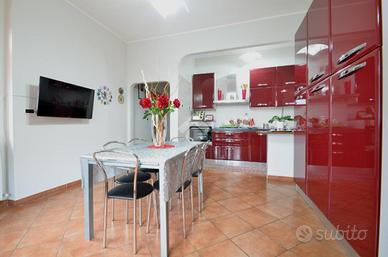 Attraverso una scala interna si raggiunge il primo piano composto da due luminosi saloni, una cucina con uscita su un balcone, due camere da letto, due bagni e una comoda zona lavanderia.
