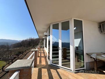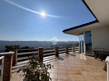 Questa soluzione si trova in una zona comoda sia ad Ivrea, con accesso comodo all'autostrada Torino-Aosta, che Rivarolo Canavese. In posizione dominante e riservata, splendida villa luminosa, panoramica ed elegante, caratterizzata da ampie vetrate nella zona giorno che regalano una straordinaria continuità tra spazi interni e spazi esterni ed una vista aperta sul paesaggio circostante. L'abitazione si sviluppa tutta su un unico livello, caratteristica ricercata e difficilmente reperibile. L'ampia zona giorno è composta di un salone di circa sessanta metri quadri con appunto queste vetrate che consentono un accesso naturale della luce; una cucina abitabile, completa la zona giorno. Un disimpegno accompagna nella zona notte in cui trovano spazio tre camere da letto tutte matrimoniali e due bagni di cui uno dotato di doccia ed uno di vasca. Il terrazzo rappresenta uno spazio ideale per momenti di relax e convivialità, immersi nella tranquillità e nella luce naturale che avvolge l'intera proprietà. Al piano seminterrato troviamo un ampio box auto di circa centoventi metri quadri, perfetto per più autovetture, area hobby, palestra o spazio deposito. Completa la proprietà un terreno terrazzato che valorizza ulteriormente l'immobile, con suggestivo viale d'accesso in salita ad 'S' che accompagna alla villa garantendo privacy e un ingresso di grande impatto scenografico. In questo terreno, potrebbe trovare posto una piscina a sfioro che garantirebbe un'ulteriore tocco di eleganza e charme alla struttura. Soluzione ideale per chi desidera indipendenza, eleganza e panorami aperti, senza rinunciare a spazi generosi e funzionali.