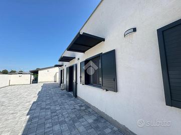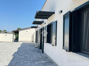 SUNO: in zona tranquilla, villa singola di nuova costruzione. L'immobile è disposto su un unico livello, il quale si compone di una zona giorno comprendete un soggiorno openspace di 70mq con cucina abitabile. Dalla zona notte si accede a due ampie camere da letto singole, due bagni luminosi e una camera matrimoniale di 30mq con cabina armadio. La proprietà include un'altra struttura utilizzata come depandance, in cui è presente un box auto doppio e una zona adibita ad uso ufficio. Costruita nel 2024, la villa è dotata delle tecnologie di ultima generazione, le quali garantiscono una classe energetica A4. Completano la proprietà un giardino di 800mq che circonda l'abitazione e 4 posti autoscoperti.
