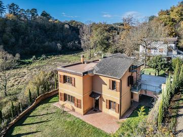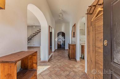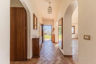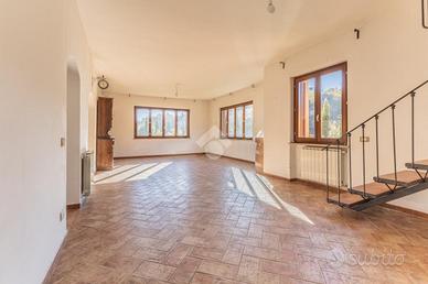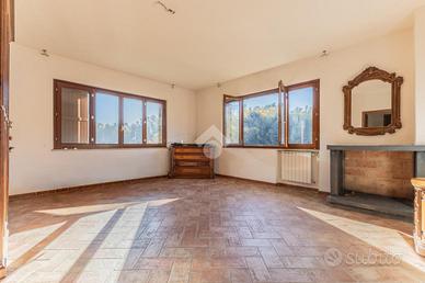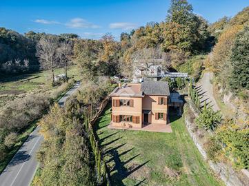 Villa singola in ottimo stato, posizione riservata e panoramica In una zona tranquilla, riservata e allo stesso tempo comoda ai servizi, proponiamo una villa singola in ottimo stato, circondata da un giardino curato e posizionata in altura, con affacci aperti e molta privacy. La vicinanza alla Cassia Bis rende questa soluzione ideale per chi si muove quotidianamente verso Roma o Viterbo, mantenendo però la serenità tipica delle aree residenziali appena fuori dal centro. La casa si sviluppa principalmente al piano terra, dove l'ingresso apre su un ampio salone particolarmente luminoso, arricchito da un camino e da una scala a vista che conduce al piano superiore. La cucina è semi abitabile, comoda e funzionale, il piano terra è completato da una camera matrimoniale e da un bagno. Il piano superiore offre ambienti versatili e di grande respiro: un disimpegno utilizzabile anche come piccolo salotto introduce gli altri spazi, tra cui una camera doppia dotata di un secondo camino -- ideale come studio, sala hobby o ulteriore zona living -- oltre a un bagno, una camera da letto e una cameretta. Un elemento di grande valore è il doppio ingresso indipendente, che consente facilmente di organizzare l'immobile come abitazione per due nuclei familiari, garantendo da subito privacy e autonomia. La villa si presenta in condizioni ottime, luminosa, accogliente e pronta da vivere senza necessità di interventi. Una soluzione perfetta per chi cerca indipendenza, comodità e un contesto panoramico, a breve distanza dal paese e con collegamenti rapidi per chi lavora fuori.