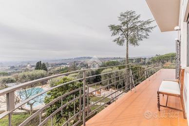 Villa unifamiliare con piscina a Fonte Vivola - Sutri Nel prestigioso contesto residenziale di Fonte Vivola, proponiamo una villa unifamiliare di lusso con 2600 m² di giardino disposta su più livelli, piscina a sale, due pozzi e due posti auto coperti. La proprietà gode di grande privacy, viste aperte e spazi esterni curati, ideali per vivere all'aperto tutto l'anno. Perfetta anche per più famiglie grazie alla presenza di due unità abitative indipendenti. Composizione Piano terra - Dependance Unità indipendente composta da cucina open space, zona giorno luminosa e bagno. Ideale per ospiti e momenti di relax. Primo piano - Primo appartamento Angolo cottura moderno, ampio salone, due camere da letto e un bagno. Ambienti luminosi e ben distribuiti. Secondo piano - Appartamento panoramico Collegato da scala esterna, con grande salone, ampio balcone panoramico, angolo cottura con vista mozzafiato, camera matrimoniale e due bagni. La villa è stata completamente ristrutturata tra il 2009 e il 2014, con materiali di qualità e attenzione al comfort abitativo. Ogni livello può essere vissuto in modo indipendente o integrato all'interno della stessa unità familiare. Grazie alla suddivisione in tre appartamenti autonomi, rappresenta una soluzione ideale per famiglie estese, ospiti, vacanze o attività ricettive di pregio. Spazi esterni ampi, piscina a sale, viste aperte e servizi funzionali rendono questa proprietà unica nel suo genere all'interno di Fonte Vivola.