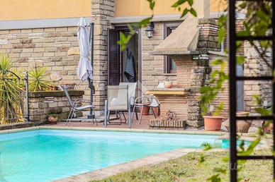 Villa singola di lusso con piscina e giardino a Sutri - Colle, Sutri(VT) In una delle zone più esclusive e residenziali di Sutri, Colle Diana, proponiamo in vendita una villa singola di prestigio, caratterizzata da grande luminosità e comfort assoluto, con pannelli fotovoltaici che garantiscono efficienza energetica e riduzione dei consumi. La proprietà è circondata da un curato giardino privato, perfettamente vivibile, che ospita una splendida piscina, uno spazio attrezzato con portico in legno perfetto per momenti conviviali, forno a legna. La zona giorno, al piano terra, si compone di un ampio salone con camino, zona divani e tavolo da pranzo, con uscita diretta sul portico dotato di tende da sole. Sullo stesso livello troviamo la cucina in muratura, funzionale e ben organizzata, e una camera matrimoniale con bagno, con spazi ben distribuiti. Il piano superiore, dedicato esclusivamente alla zona notte, ospita due camere da letto, di cui una doppia con balcone, vista panoramica e affaccio su piscina, e un bagno. Completa la proprietà il piano seminterrato, composto da cucina, soggiorno, camera da letto e bagno, uno spazio versatile ideale come area ospiti, zona relax o appartamento indipendente. Una soluzione unica per chi cerca eleganza, indipendenza e qualità della vita, in uno dei contesti più richiesti della Tuscia. Per maggiori informazioni o per prenotare una visita, non esitate a contattarci.
