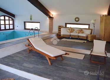 TAGLIACOZZO strada comunale per Gallo (Vicino Ippodromo) si propone in vendita una VILLA SINGOLA costruita nel 2003 con TERRENO di 10.920MQ. Questa residenza offre un ambiente esclusivo e riservato, circondato da un ampio terreno che garantisce privacy e tranquillità. La villa è caratterizzata da finiture di pregio che ne esaltano l'eleganza e il comfort abitativo. Un punto di forza distintivo è la piscina interna riscaldata, ideale per momenti di relax in ogni stagione. La posizione strategica, a soli 3 km dal centro di Tagliacozzo, consente di godere della tranquillità della campagna senza rinunciare alla comodità dei servizi cittadini. Questa proprietà rappresenta una soluzione abitativa ideale per chi cerca un equilibrio tra natura e comfort moderno. PIANO TERRA: Ingresso(12mq), soggiorno doppia altezza con camino termico (60mq), cucina (10mq), disimpegno (2,6mq), camera (15mq), bagno con finestra e doccia (2,2mq); Zona relax di 104mq con PISCINA coperta, una rarità assoluta nella zona, perfetta per essere utilizzata tutto l'anno; PIANO PRIMO: disimpegno (9mq), camera (11,6mq), camera (10,5mq), bagno con finestra e vasca (4,5mq); Patio esterno con forno e zona pranzo di 40mq; TETTOIA di 60mq per parcheggio auto; Molto caratteristico il Laghetto la cui acqua deriva da recupero acque piovane che utilizzata anche per irrigazione del terreno.