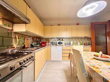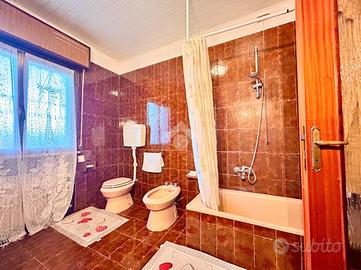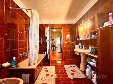 La zona notte è composta da tre camere da letto, una matrimoniale e due doppie, ideali per accogliere la famiglia o creare spazi dedicati agli ospiti e al lavoro da casa. Il bagno, spazioso e curato, misura ben 15 mq e dispone di vasca.