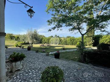 È circondato da 1.800 mq di giardino recintato, completamente pianeggiante e sfruttabile, caratterizzato da numerose piante ornamentali e un frutteto.