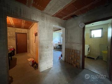 La zona giorno è caratterizzata da una cucina luminosa e da una sala accogliente con camino a legna, entrambe con accesso diretto al terrazzo esterno, il luogo ideale per pranzi all'aperto e momenti di relax. La zona notte comprende due camere matrimoniali, di cui una con balcone che si affaccia sul giardino retrostante, e un bagno finestrato con vasca.
