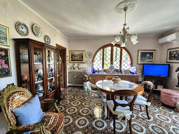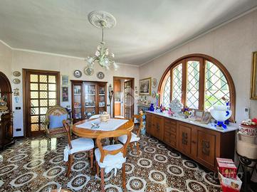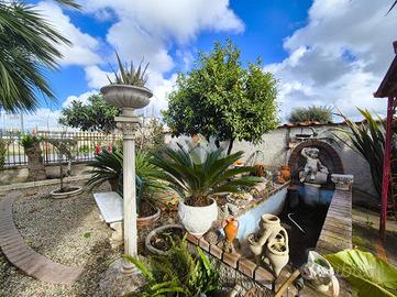 Abbiamo preso in vendita una villa unifamiliare di ampia metratura con un giardino circostante di mq 800. L'ingresso della casa dispone di doppio accesso, pedonale e carrabile. Ci accoglie un verdeggiante giardino, curato nei minimi particolari, con piante e agrumi, rifinito con numerose sculture, fontane, gazebi, pozzo, che offre diversi spazi da adibire ad area relax e zona pranzo con annesso forno e un comodo Garege di mq 23. Nella parte posteriore del giardino invece, è stata creata un area di orto urbano per avere il piacere di mangiare prodotti a Km 0. Il piano terra della villa è adibito ad un ampia sala hobby di mq 50 c.a con annessi servizi, un comodo ripostiglio e un annesso magazzino di mq 32. Attraverso una scalinata esterna, si accede all'appartamento sovrastante, circondato da u balcone semi-perimetrale. La casa è composta da un ampio ingresso, un comodo soggiorno, cucinotto, 2 camere da letto matrimoniali, uno studio e un bagno completo. Dispone di inferriate in ferro battuto, rifiniture di artigianato, infissi in legno con vetro isolante, impianto di riscaldamento con caldaia a pellet e climatizzatori.