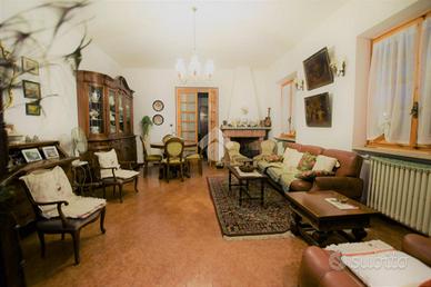 La parte abitativa si sviluppa tutta su di un piano, suddiviso in un salone caratterizzato da un camino a legna funzionante, cucina con uscita diretta sul giardino, due camere da letto più una terza adibita a studio, servite entrambe da due bagni. Sempre al piano terra vi è un locale ad uso tavernetta, con sovrastante ambiente rustico adatto ad un eventuale recupero ad uso abitativo. Al piano seminterrato vi sono il locale tecnico, un ampio locale di sgombero e garage.